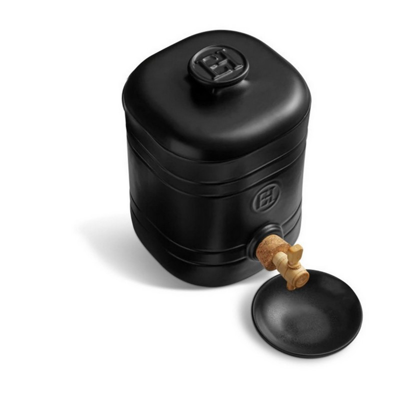 Faire son propre vinaigre n'a jamais été aussi facile avec le vinaigrier fabriqué en France par Emile Henry. Fabriqué en céramique, le vinaigrier dispose à l'intérieur d'un émail résistant à l'acidité. Pour faire votre propre vinaigre, il vous suffit d'y mettre du vinaigre ou du vin, puis d'alimenter régulièrement votre vinaigrier avec des fonds de bouteilles de vin.
