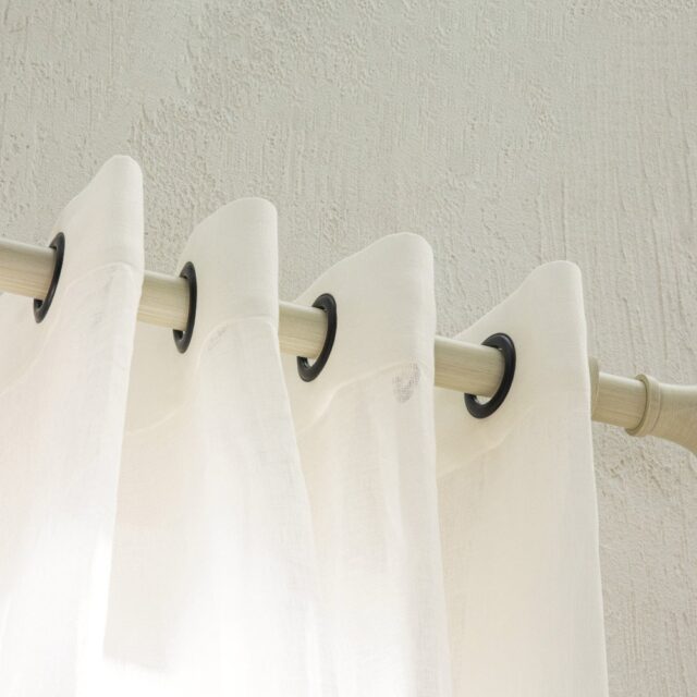 Ajoutez une touche d'élégance discrète à votre espace de vie avec notre voilage en lin couleur crème. Fabriqué à partir de lin de haute qualité, ce voilage apporte une touche de décoration à votre pièce tout en légèreté. Rideau vendu à l'unité. Confectionné à la commande.Sa couleur crème douce apporte une luminosité subtile dans toutes les pièces, créant une atmosphère chaleureuse et accueillante.Confectionnée dans notre atelier, notre voilage en lin couleur crème offre une finition soignée et un ourlet discret qui apporte une touche d'élégance à vos fenêtres, et s’intégrera facilement dans tous les styles d’intérieur.Nos voilages sont fabriqués dans un pur lin lavé de 110gr/m² qui offre une translucidité modérée, filtrant doucement la lumière du soleil tout en préservant votre intimité. Découvrez toute notre gamme de voilages en lin pour votre intérieur.Fabriqués en France et conçus uniquement avec les fibres longues du lin de Normandie, nos voilages sont particulièrement résistants et conserveront leur beauté au fil des années.Le voilage en lin présenté possède une finition œillets de coloris noir mat, mais vous pouvez choisir votre coloris d’œillets.Pour d’autres dimensions, utilisez le bouton sur-mesure pour créer un voilage en lin qui s’adaptera parfaitement à vos fenêtres.