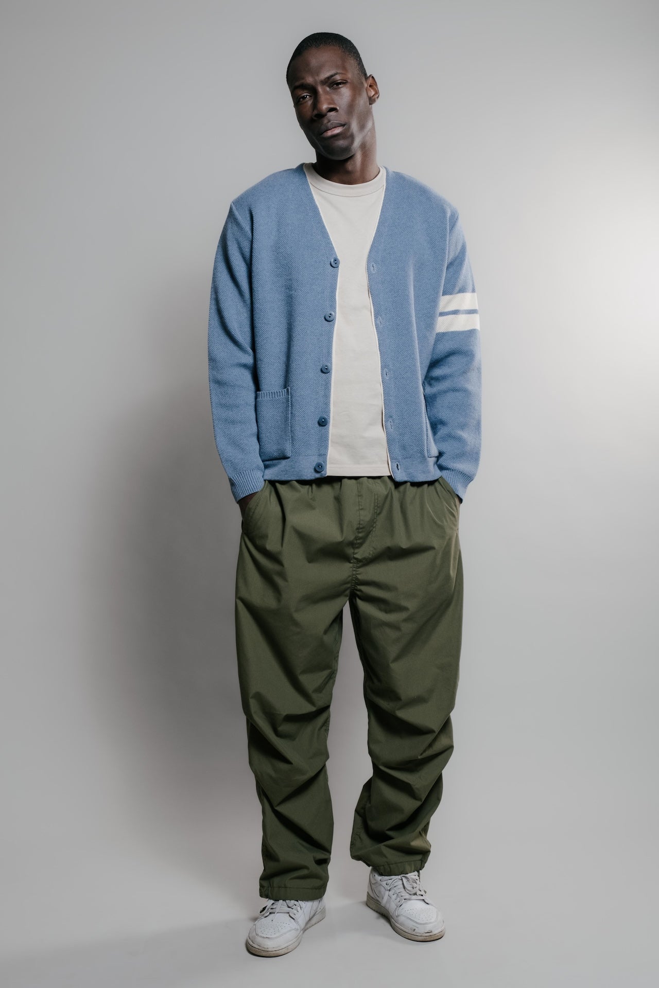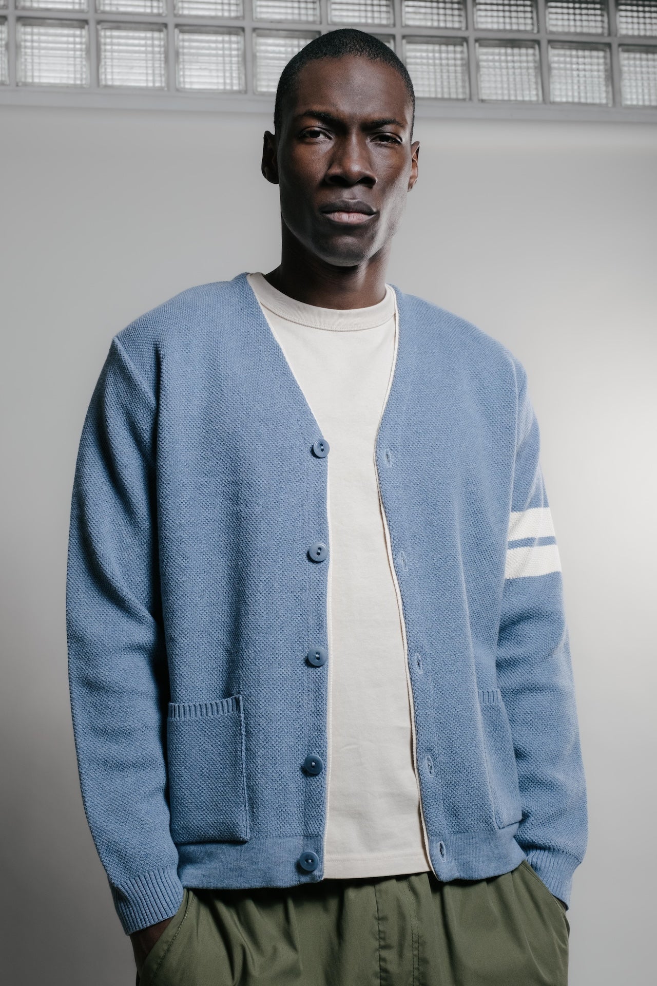 La maille du Youri Cardigan College allie style et solidité : sa structure tricotée et nos réglages précis assurent une tenue impeccable. Pensé pour être porté aussi bien sur un t-shirt, une chemise ou un sweat à capuche, ce cardigan conserve sa forme et son caractère unique. Son inspiration vient des cardigans américains des années 60, avec un bord-côtes tubulaire et des bandes sur les épaules qui rappellent l’univers universitaire. Pour les connaisseurs, ce modèle reprend le design du cardigan que nous avions développé en collaboration avec la boutique MERCI, cette fois entièrement en coton pour plus de confort. Les deux bandes colorées sur les manches incarnent l’esprit College, tandis que la maille piquée serrée offre un toucher doux et une silhouette structurée. Deux poches discrètes, intégrées dans la maille, apportent une finition fluide. Enfin, ses cinq boutons en corozo, fabriqués et teints dans la baie de Somme, ajoutent une touche d’authenticité naturelle. Il est doté de deux poches ton sur ton, tricotées dans la même maille et cousues directement sur la pièce pour plus de fluidité. Ses cinq boutons en corozo — un matériau naturel issu de la noix d’un palmier, également appelé « ivoire végétal » — sont fabriqués et teints en France, dans la baie de Somme. Matière : 100% coton peigné, labelissé OEKO-TEX standard 100 Tricotage en maille piquée, serrée, jauge 14 Finitions : bords-côtes tubulaire Toucher : doux et confortable 5 boutons en corozo Poids : 800 grammes en taille L